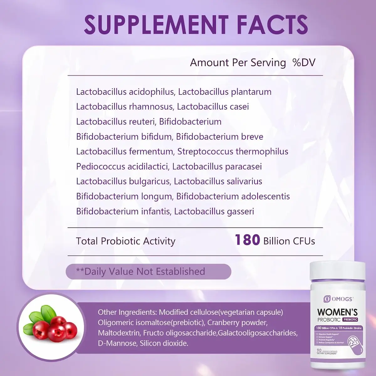 PROBIÓTICO FEMENINO CON PREBIÓTICOS es una fórmula avanzada diseñada específicamente para la salud de la mujer, combinando 18 cepas probióticas con alta concentración (180 billones UFC) junto con prebióticos y compuestos funcionales como arándano (cranberry) y D-manosa.